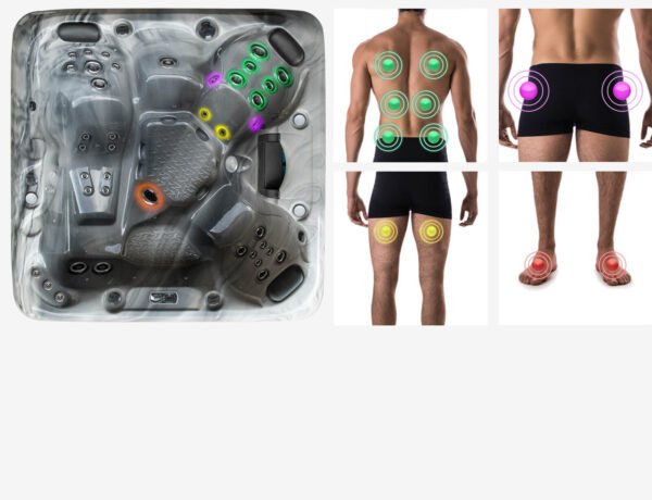 Avec 8 options de couleurs différentes disponibles, choisissez-en une pour fixer votre humeur ou laissez les couleurs tourner pendant que vous vous immergez dans ces effets visuels époustouflants illuminant l’intérieur du spa, le panneau de commande et le plancher.