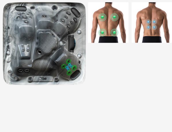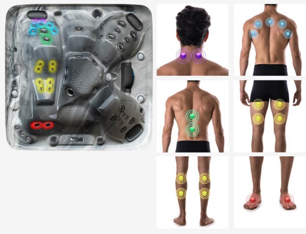 Positionnés de manière à exercer leur magie sur tout le corps, les courbatures et les douleurs disparaissent simplement grâce aux jets d’hydrothérapie revigorants d’Earth Spas. Les jets pour le cou et les épaules ciblent le cou, les épaules et les trapèzes, tandis que les jets pour le dos suivent la courbure de la colonne vertébrale pour atteindre les zones les plus désirées. Les jets de pieds Earth Spas procurent un massage en profondeur bien mérité.